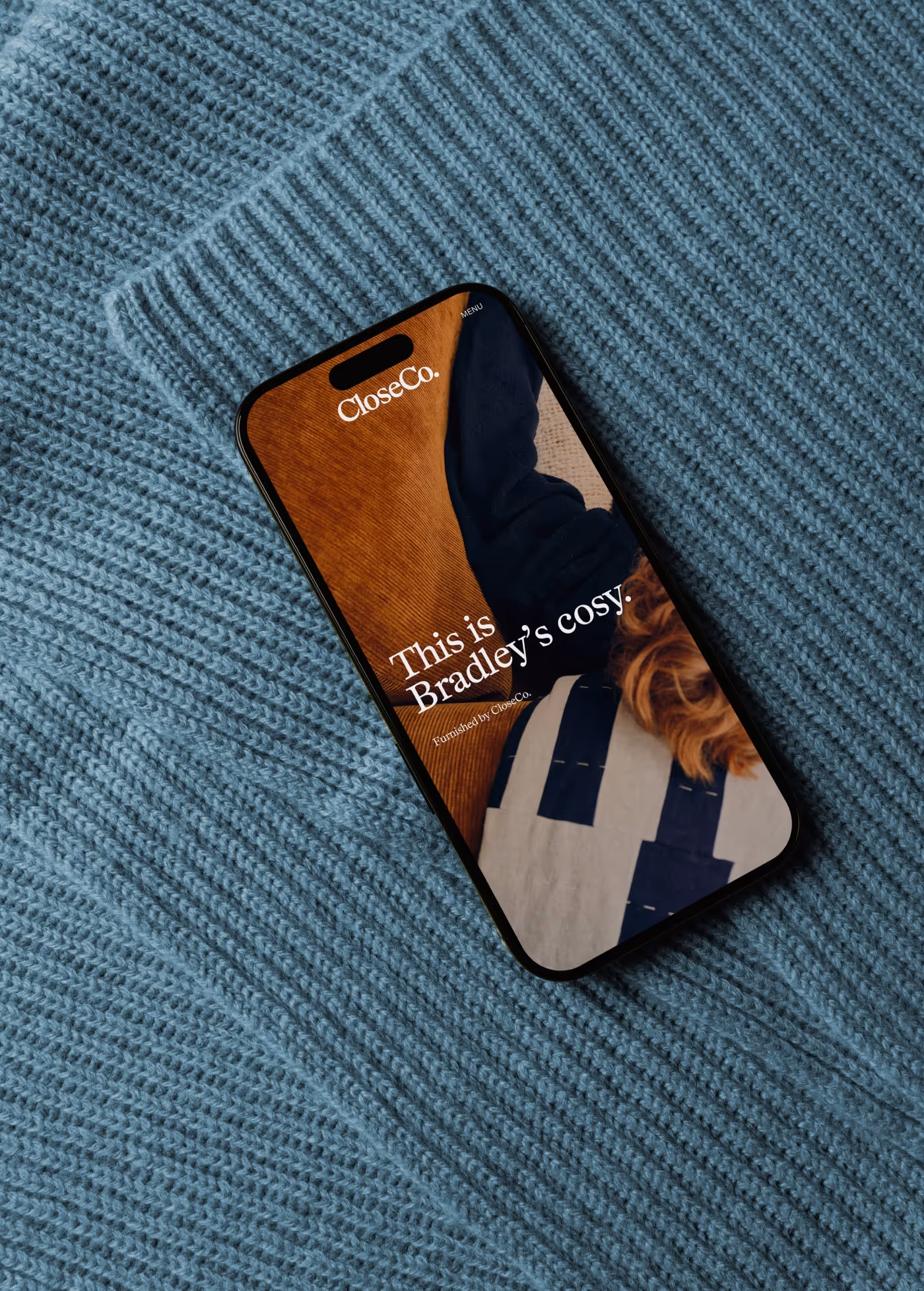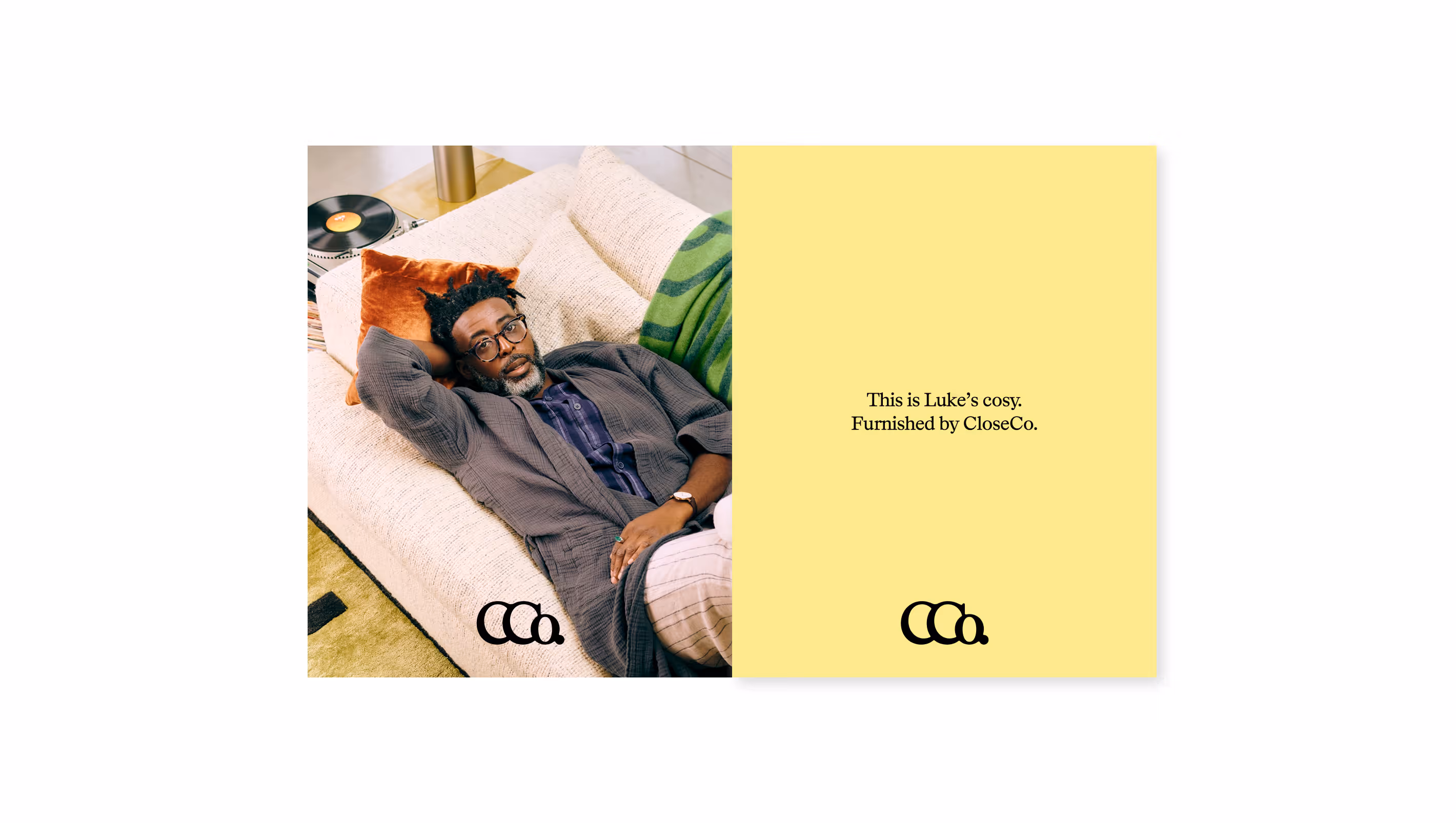 This became the campaign's organizing idea: "This is Mary's cosy.” “This is Toby's cosy." A simple, personal declaration that cosy belongs to whoever is living it. And whatever that looks like, CloseCo. can furnish it, captured in the closing line: "Furnished by CloseCo."